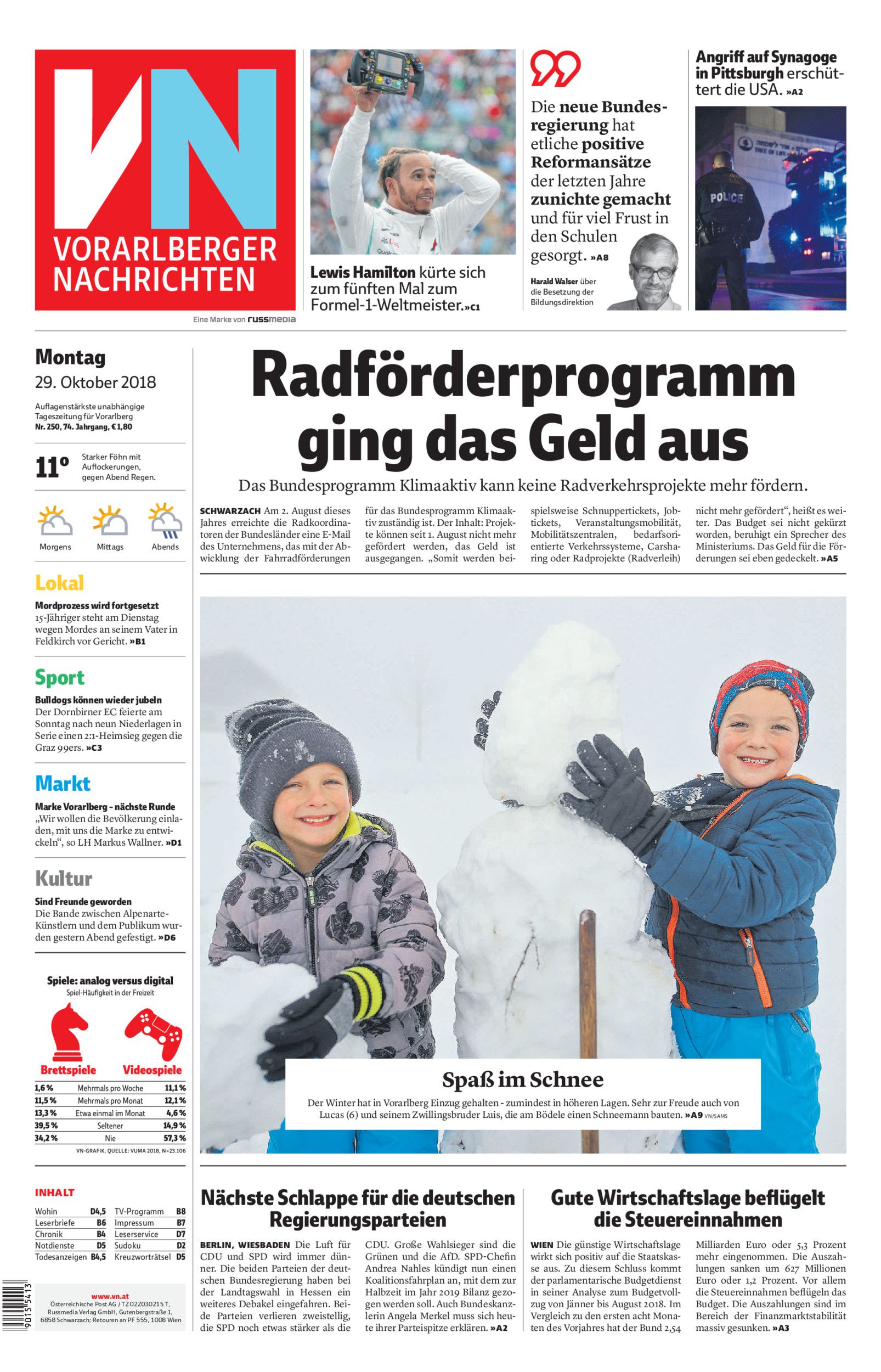 Montag 29. Oktober 2018
