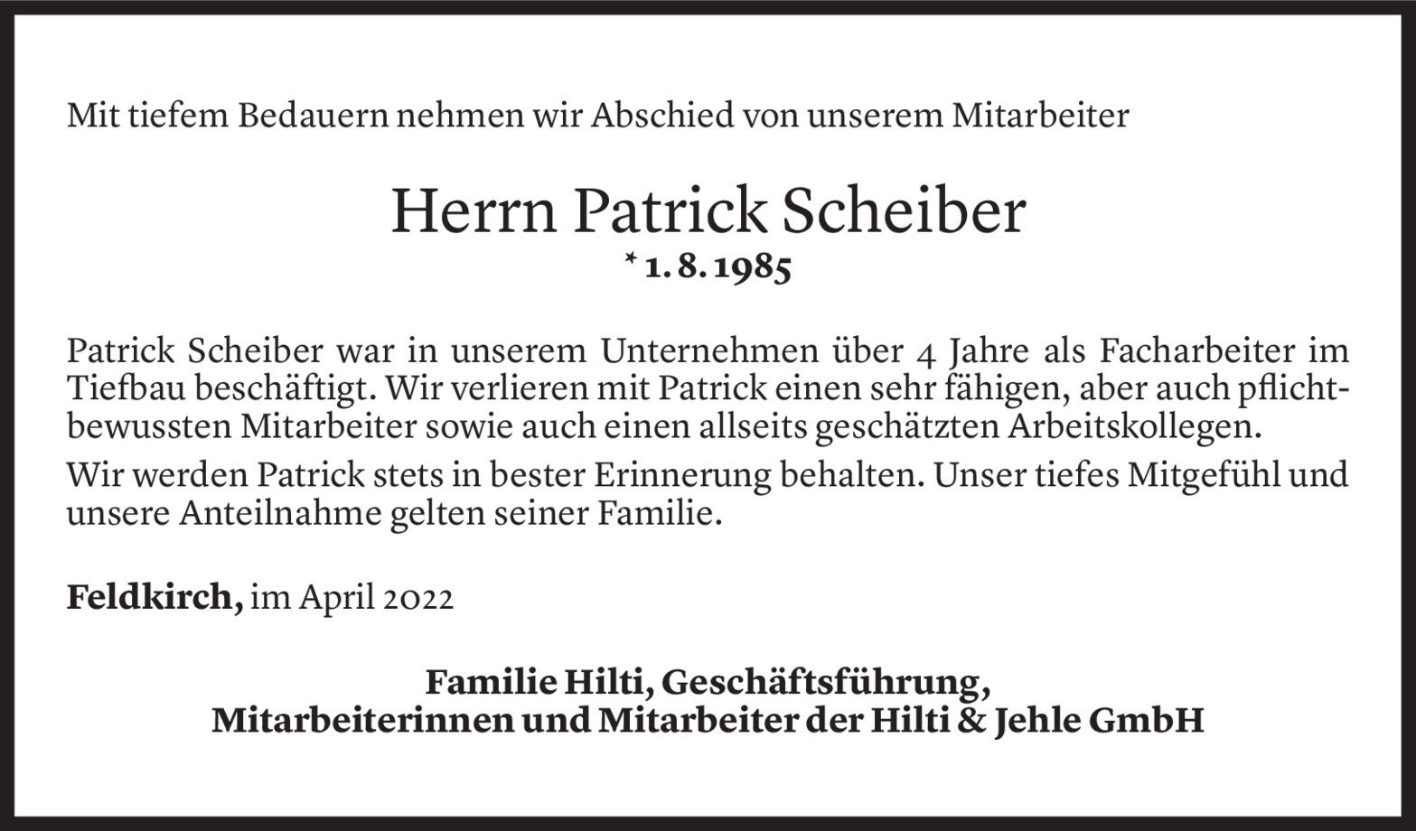 Tödlicher Arbeitsunfall