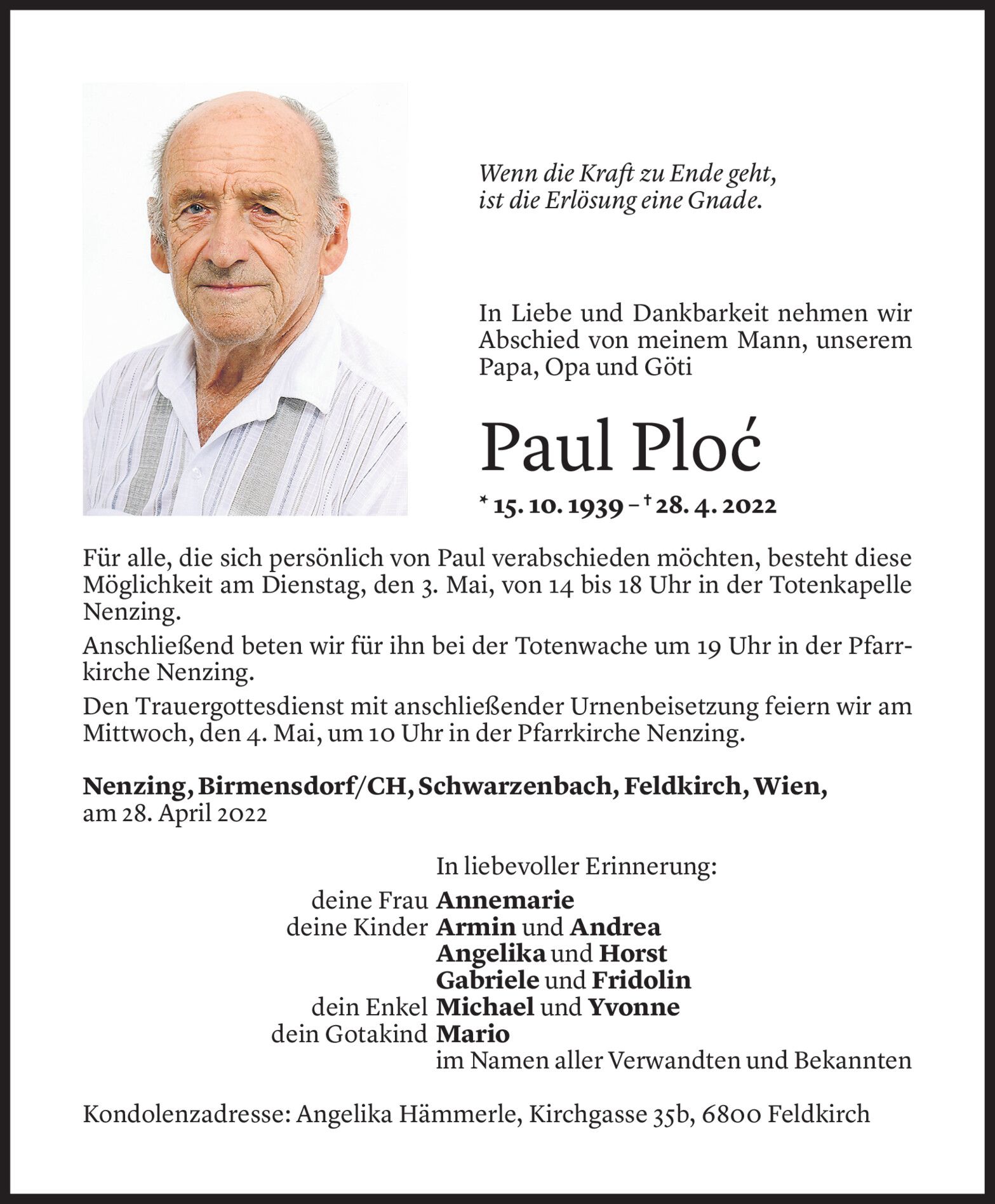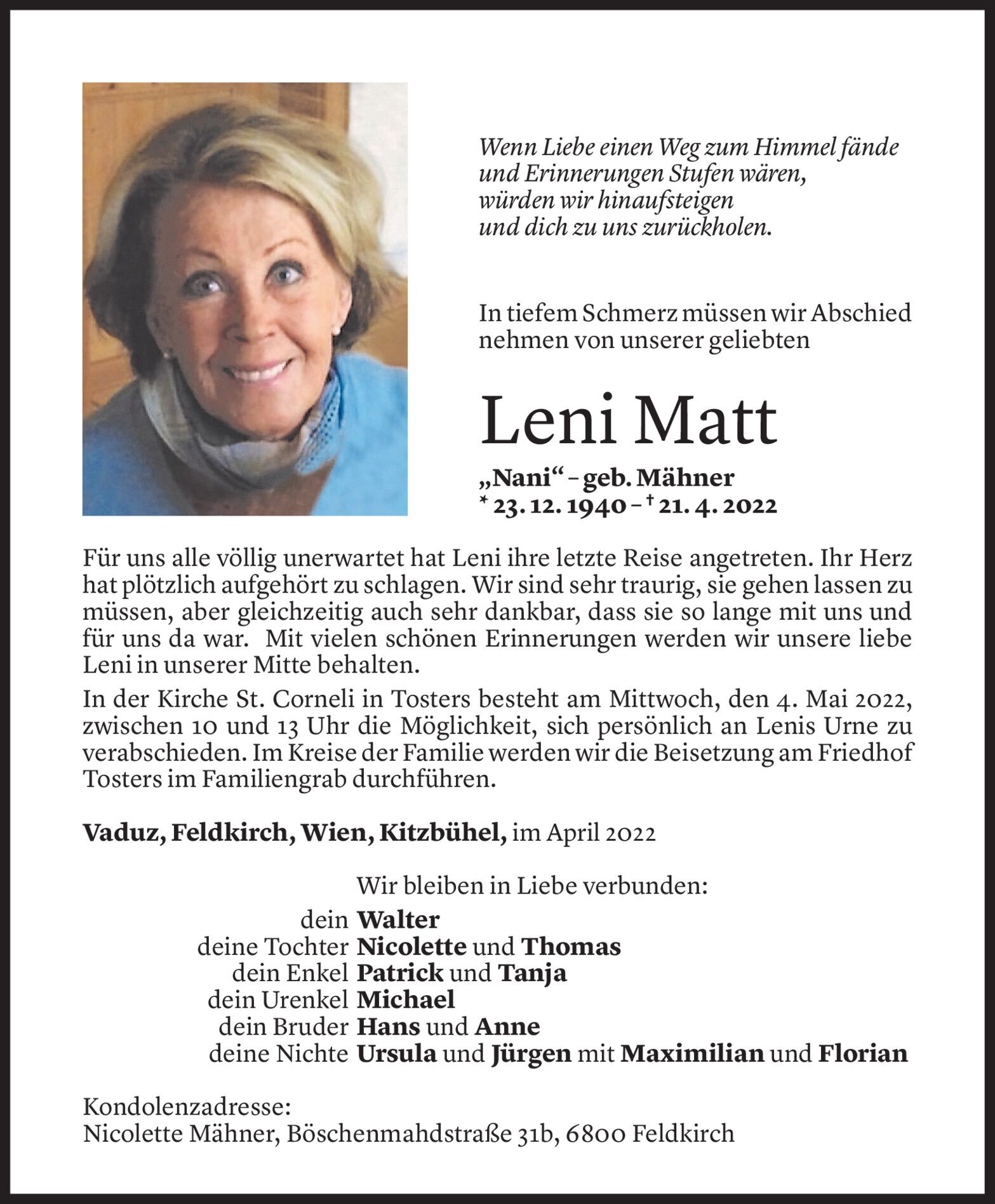Samstag 30. April 2022