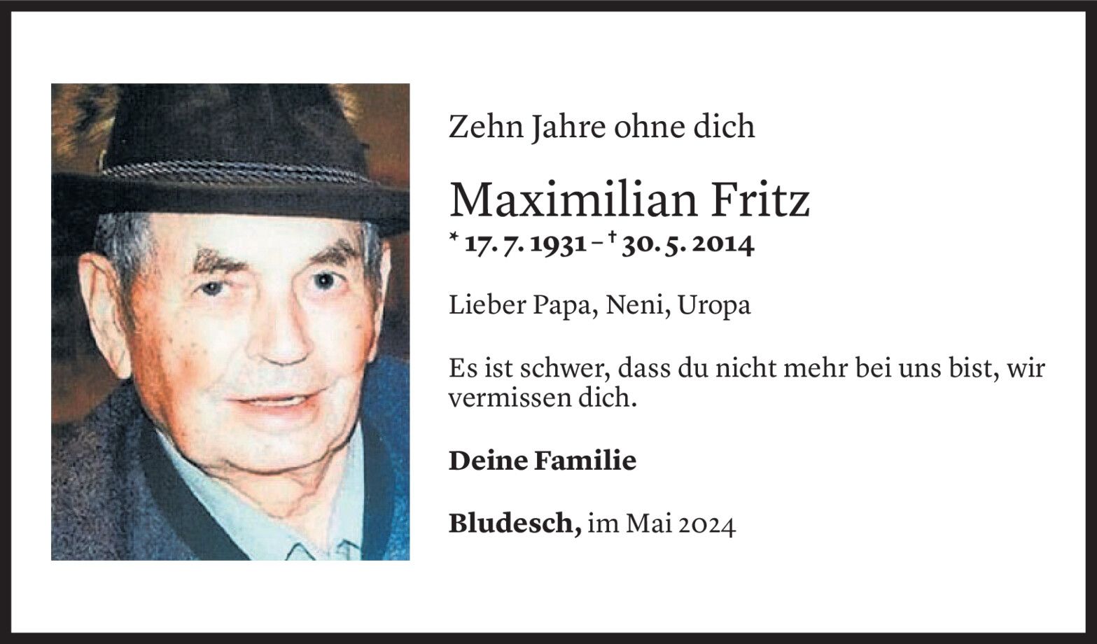 Donnerstag 30. Mai 2024