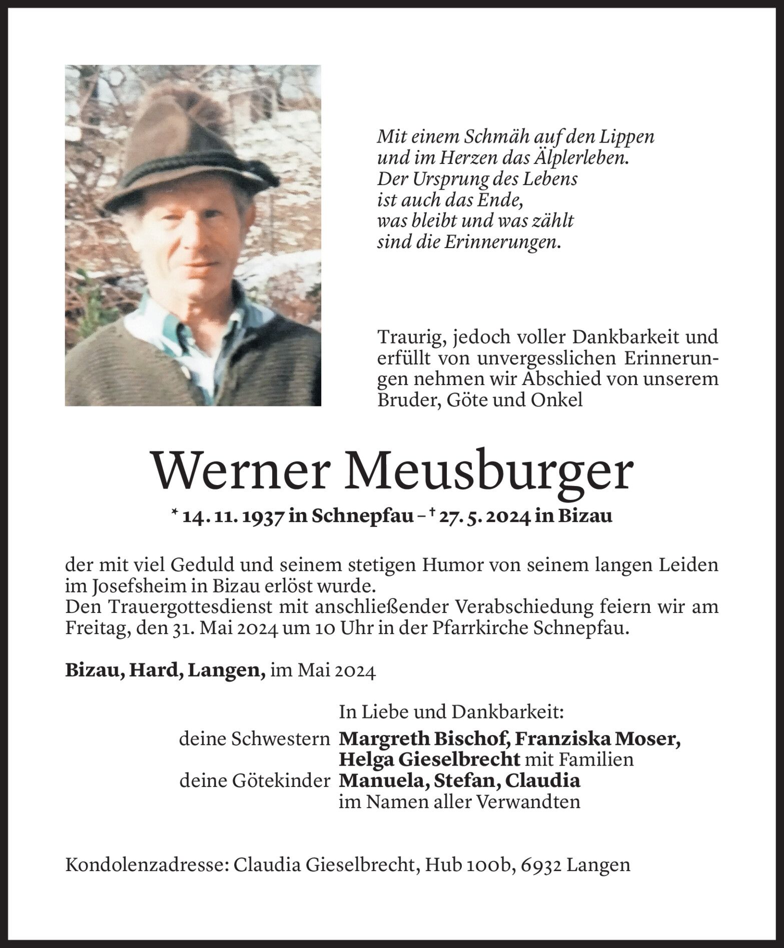 Gedanken zum feiertag. Von Pfr. Ronald Stefani, Pfarrverband Altenstadt und Levis