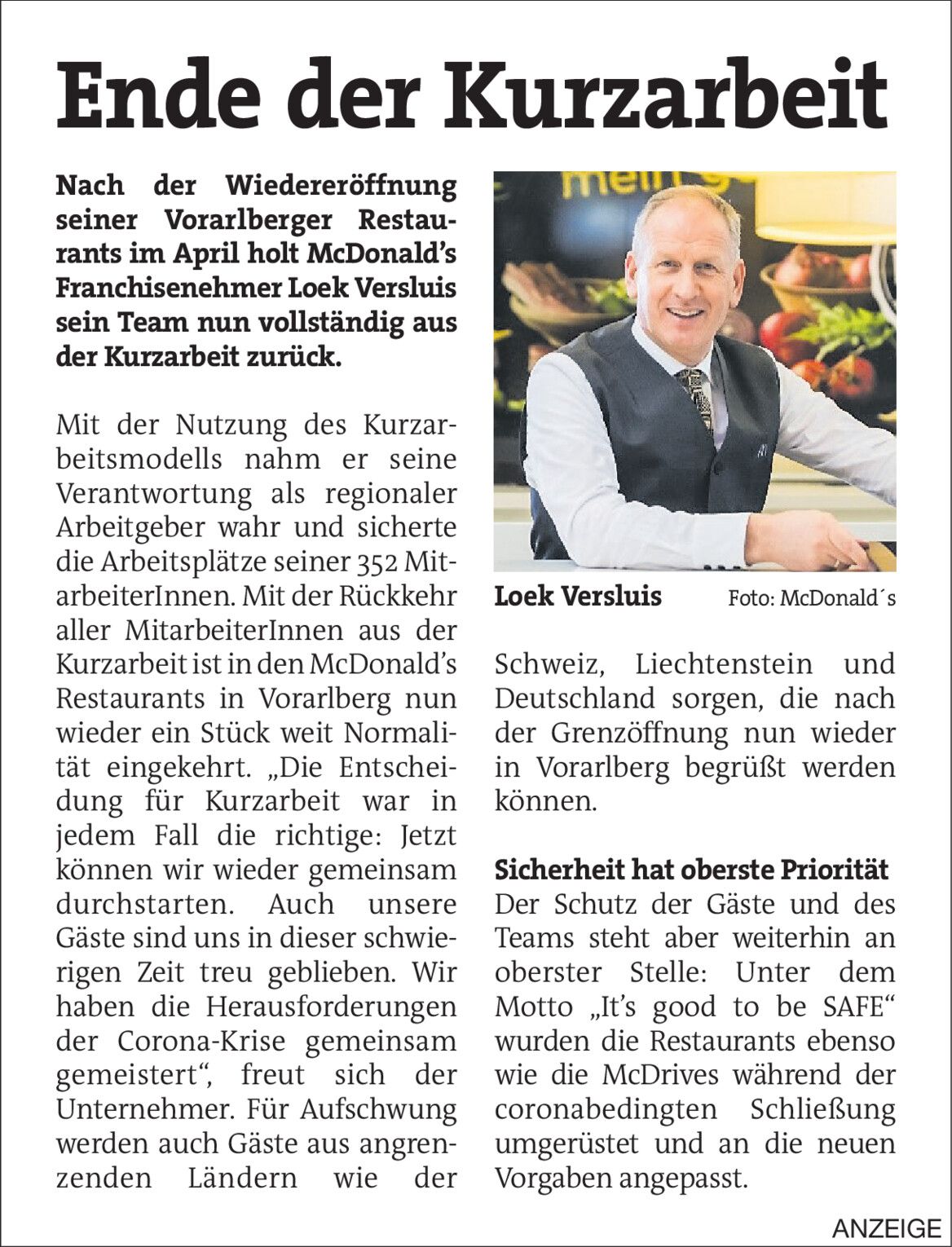 Kurzarbeit beendet: McDonald’s-Teams wieder voll im Einsatz