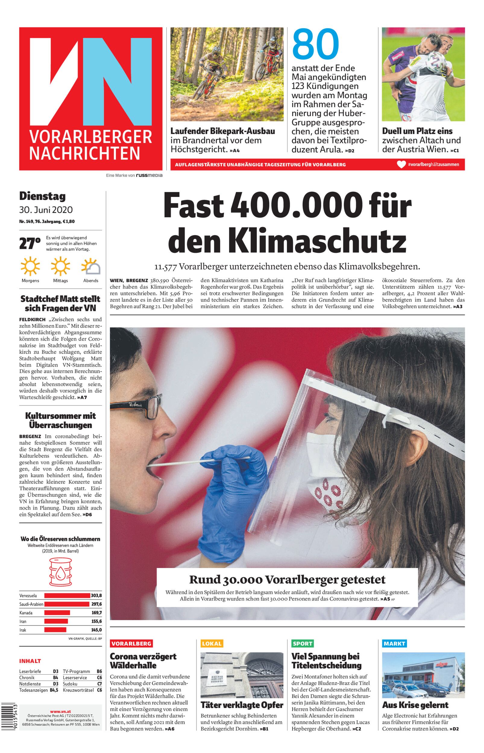Dienstag 30. Juni 2020