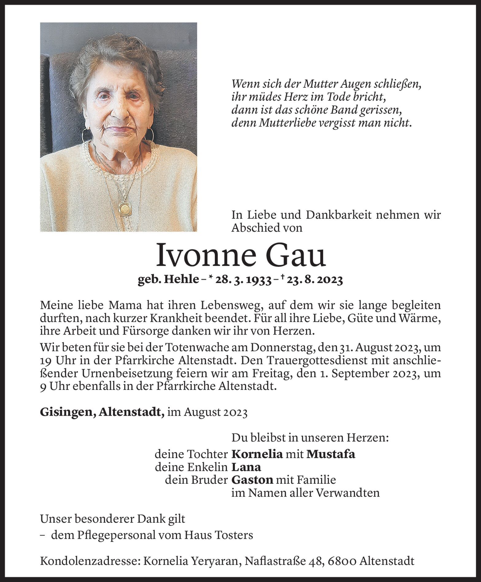 Mittwoch 30. August 2023