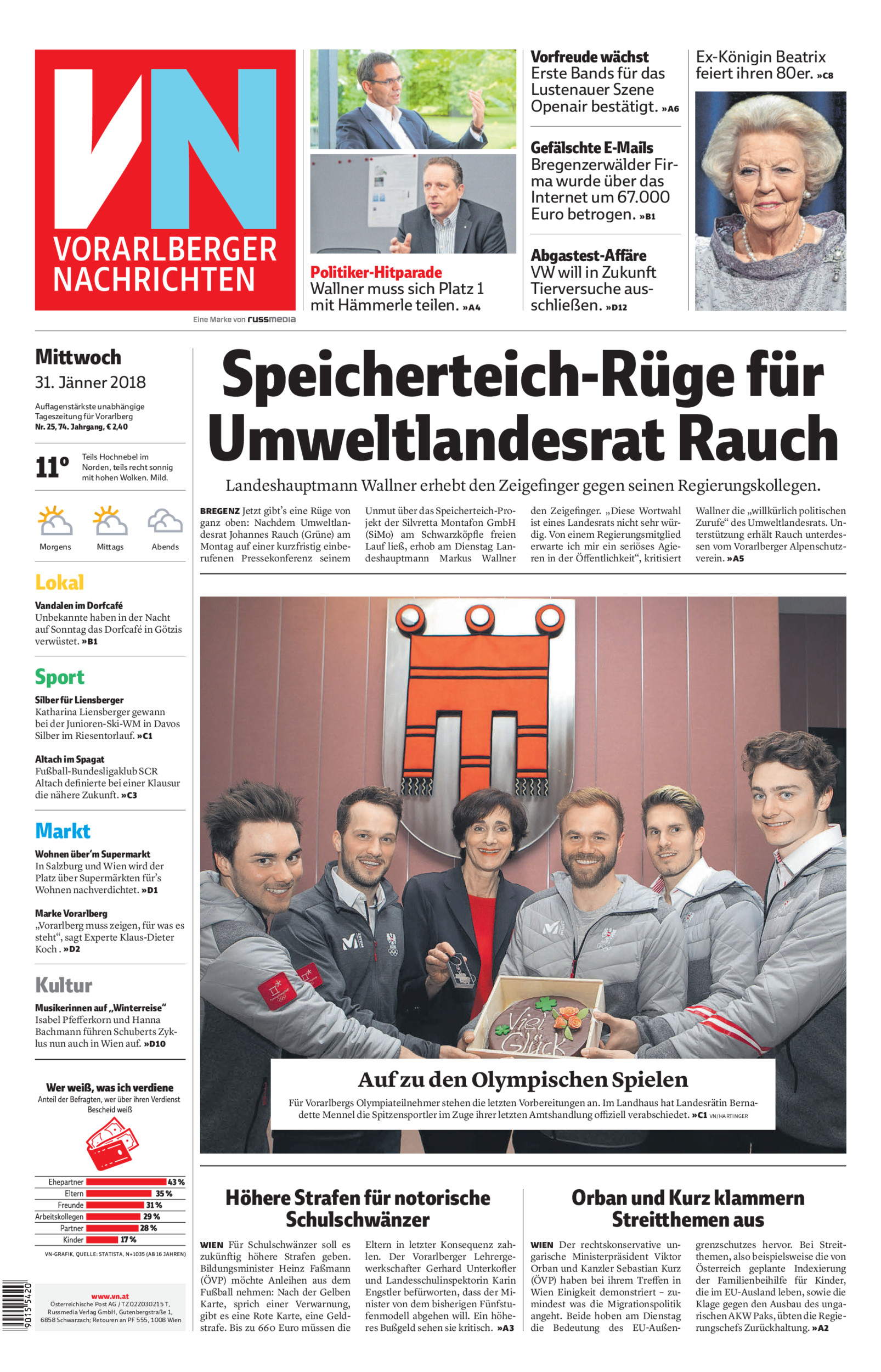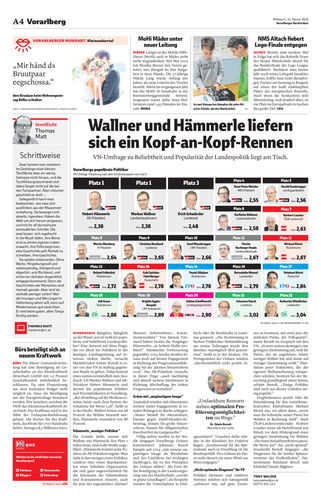 Politiker-Hitparade Wallner muss sich Platz 1 mit Hämmerle teilen. »A4