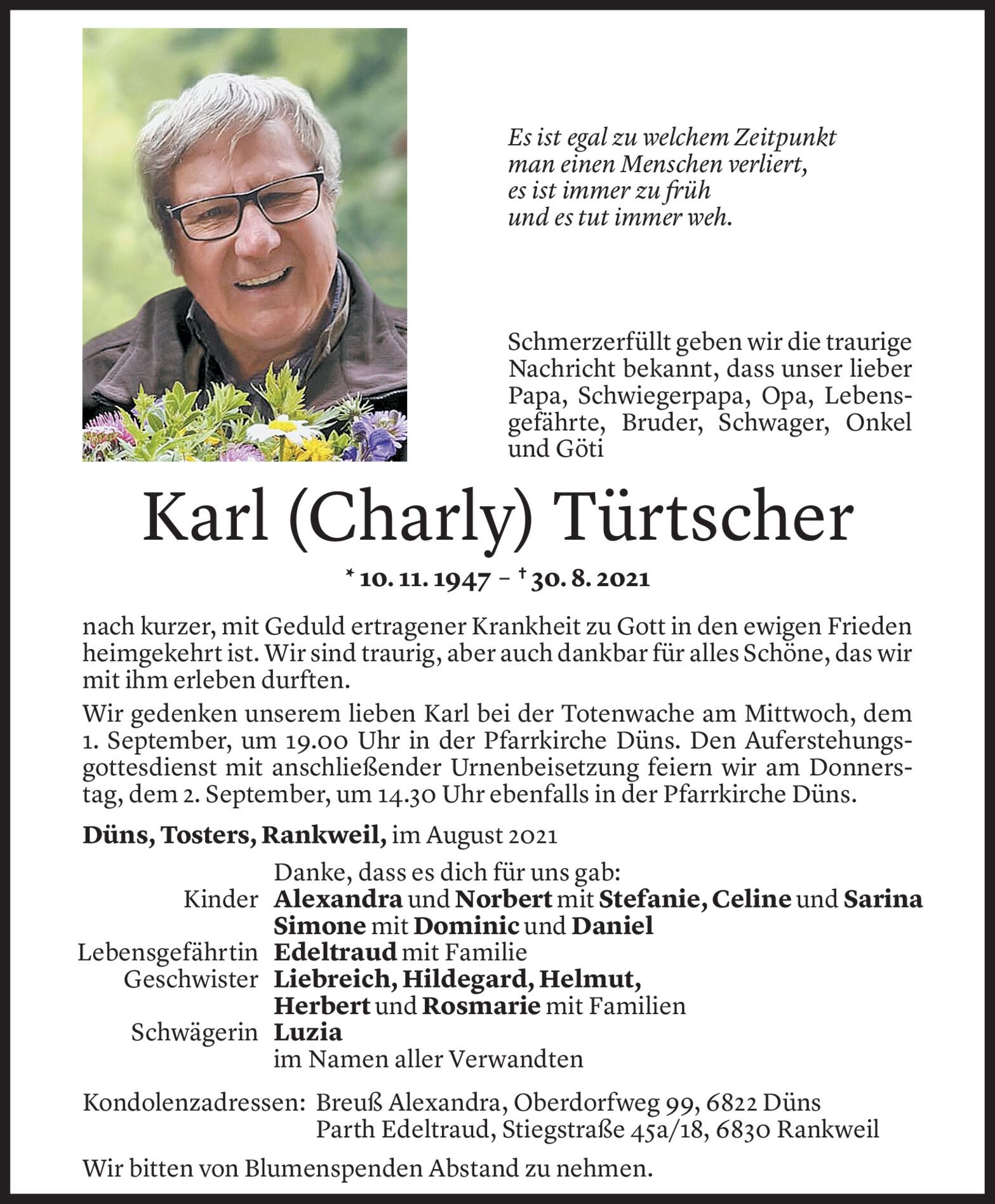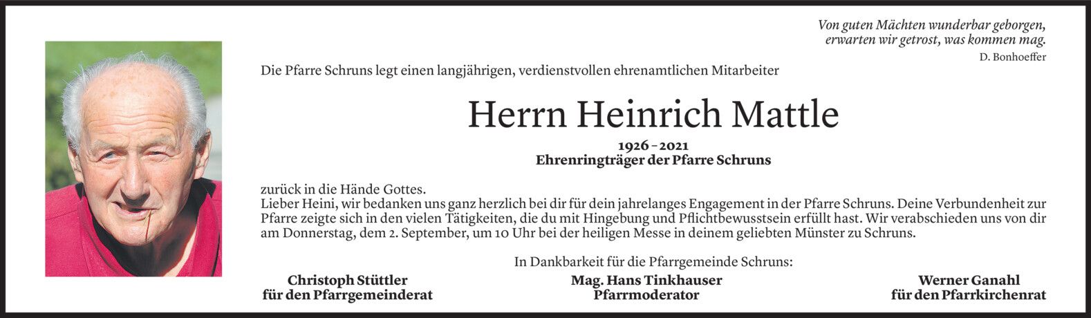 Dienstag 31. August 2021