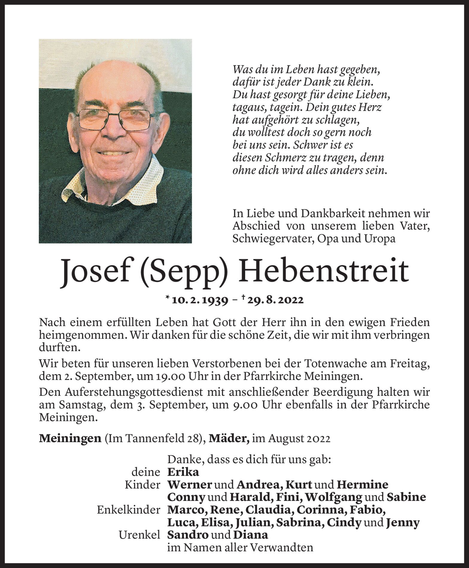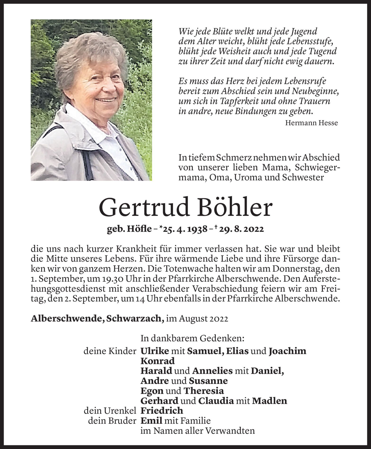 Mittwoch 31. August 2022