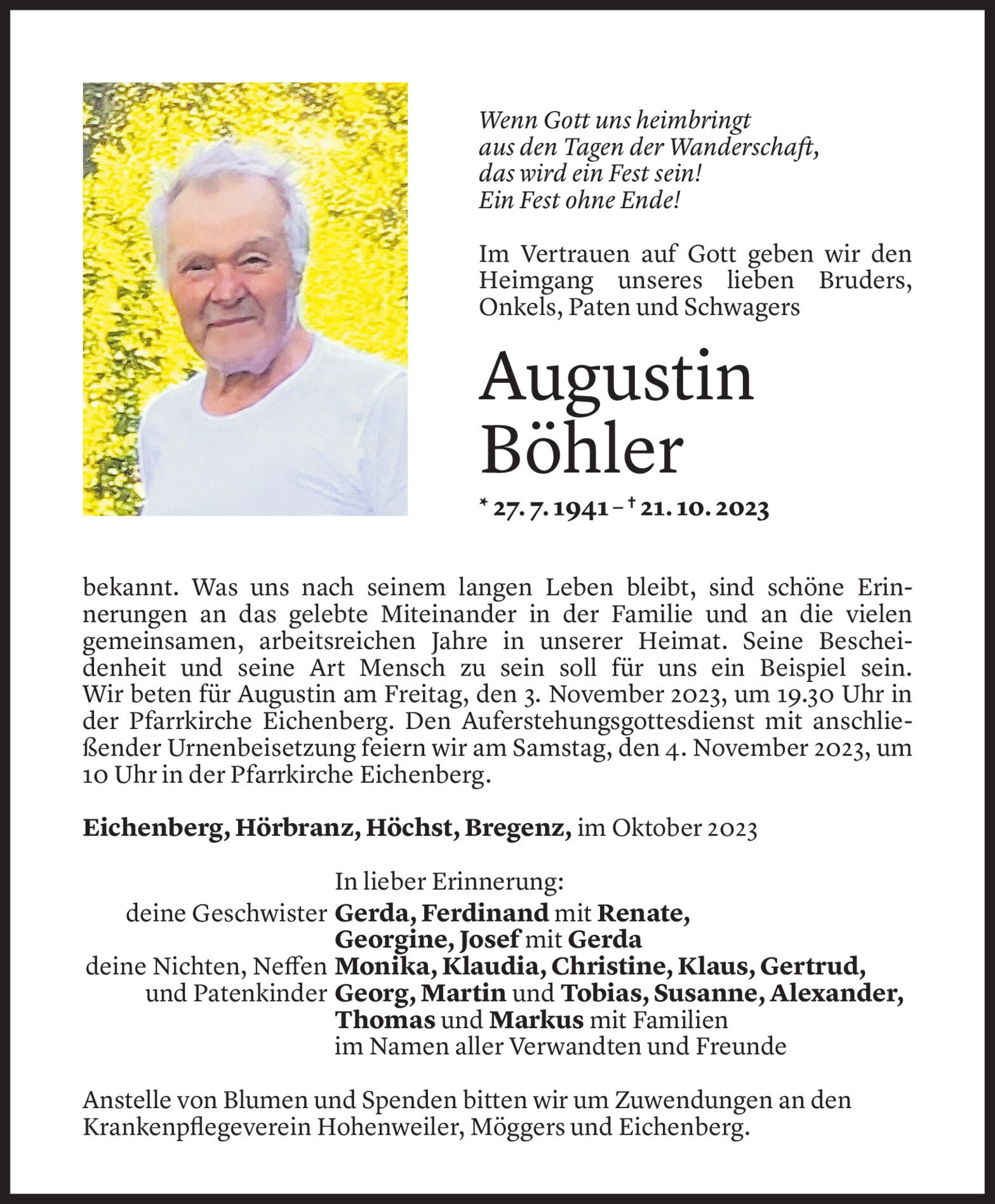 Hospiz Vorarlberg mit Trauerangeboten zu Allerheiligen.
