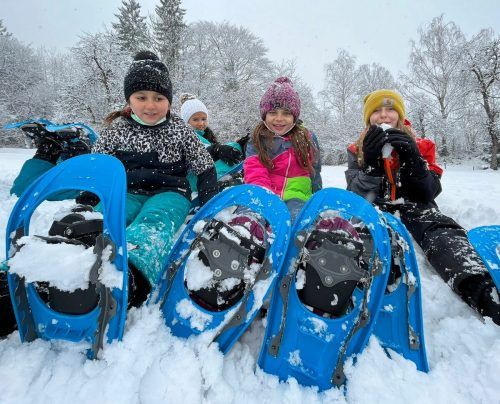 Da aufgrund der Covid-Bestimmungen der Turnunterricht nur eingeschränkt möglich ist, bewegen sich die Kinder der Volksschule Vandans und des Schulzentrums viel im Freien. Bei guter Schneelage auch mal mit Schneeschuhen. Ausgestattet mit den Fußvergrößerungen wird im Tiefschnee die Umgebung erkundet.