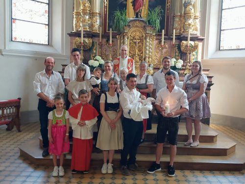 Matteo wurde am 15. Mai in der Pfarrkirche Bezau getauft. Mit den Eltern Nadine und Anton