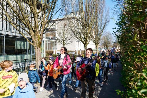 Mit einer berührenden Friedensaktion haben die Kinder der Volksschule Kirchdorf am Freitagvormittag ein Zeichen gegen Krieg und für die Völkerverständigung gesetzt. In ihrer Sprache riefen die Schülerinnen und Schüler das Wort Frieden in die Welt hinaus und marschierten durch das Rathausquartier, um