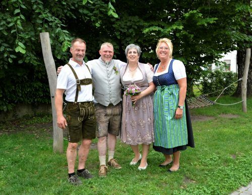 Dornbirn In der Tracht feierten Annette Bussjäger und Christian Almberger mit Familie und Freunden ihre standesamtliche Hochzeit am 3. Juni. Als sie von der Standesbeamtin Lea Peter frisch getraut aus dem Standesamt kamen, war die Überraschung groß. Ihre Motorradkollegen und -kolleginnen waren mit i