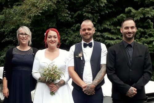 Feldkirch Am 15. Juli machten sich Jasmine Schranz und Alexander Paul aus Feldkirch zusammen mit ihren Trauzeugen Melanie Monschein und Christoph Schranz auf den Weg ins Eheglück Richtung Standesamt. Dort wurden sie von der Standesbeamtin Karoline Matt erwartet, die sie zu rechtlich anerkannten Ehel