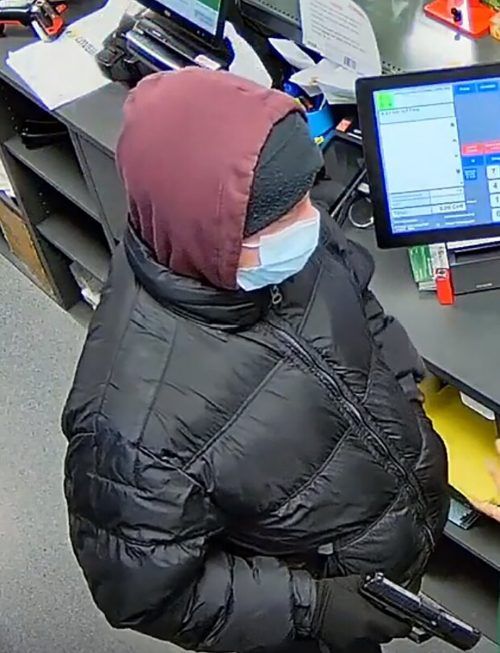 Ein vermummter, mit einer mutmaßlichen Pistole bewaffneter Täter drang in den Shop ein. Daraufhin griff er