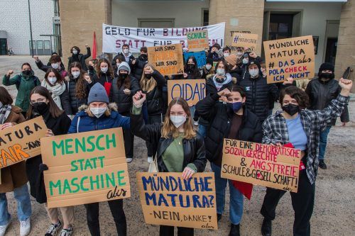Viele Oberstufenschülerinnen und -schüler in ganz Österreich wollen sich nicht damit abfinden, dass heuer wieder eine mündliche Matura stattfinden soll. Dagegen gab es am Mittwoch bundesweit Proteste. Auch in der Bregenzer Innenstadt versammelten sich rund 50 Schülerinnen und Schüler, um ihren Unmut