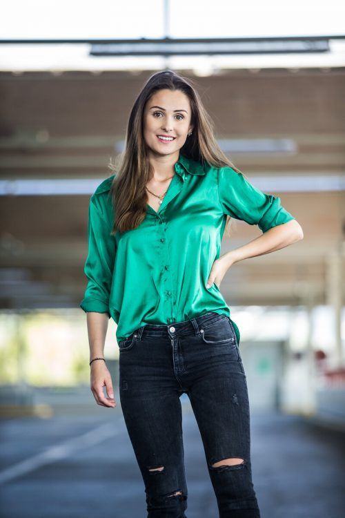 Mit der schneidigen Satinbluse sind Lisa (24) aus Weiler glänzende Auftritte garantiert. VN/Steurer