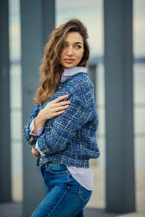 Irina (19) aus Schwarzach kuschelt sich diesen Herbst in ihren angesagten Bouclé-Blazer. VN/Steurer