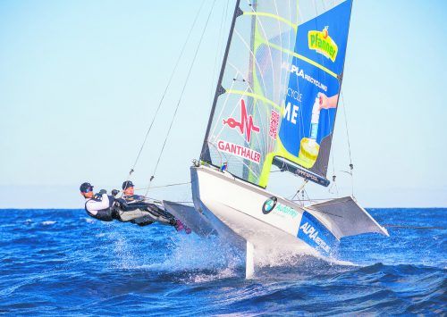 49er-Segelduo Benjamin Bildstein und David Hussl setzt gemeinsam mit Alpla-Recycling ein Zeichen gegen Umweltverschmutzung. »C5 OeSV