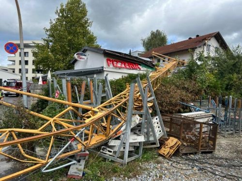Baukran stürzte in Lochau auf eine Pizzeria und zwei weitere Häuser. »A8