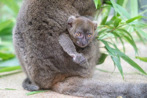 Der Kölner Zoo freut sich über Nachwuchs bei den Großen Bambuslemuren. Große Bambuslemuren leben nach Angaben des Zoos eigentlich in zwei kleinen Regenwaldgebieten im Norden und Osten Madagaskars. Daher stamme auch der Name des Jungtiers: Dakari bedeute auf madagassisch „Freude“. Zoo Köln/W. Scheure