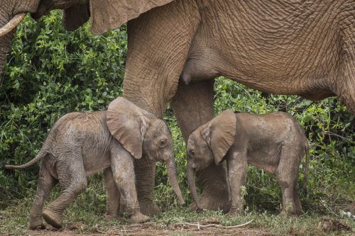 Seltener Nachwuchs im Samburu-Nationalreservat im Norden Kenias: Elefantenkuh Bora hat Zwillinge geboren – ein Männchen und ein Weibchen. „Zwillinge kommen in Elefantenpopulationen nur selten vor und machen nur etwa ein Prozent der Geburten aus“, erklärte Iain Douglas-Hamilton, Gründer von „Save the