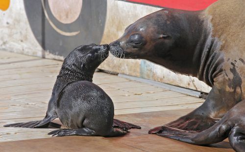 Die Seelöwenmama und ihr Neugeborenes sind im Tierpark Marineland in Antibes in Südfrankreich zu Hause. Das Seelöwenbaby wurde vor einer Woche im Park geboren und ist der erste Nachwuchs der sechsjährigen Seelöwin. ap