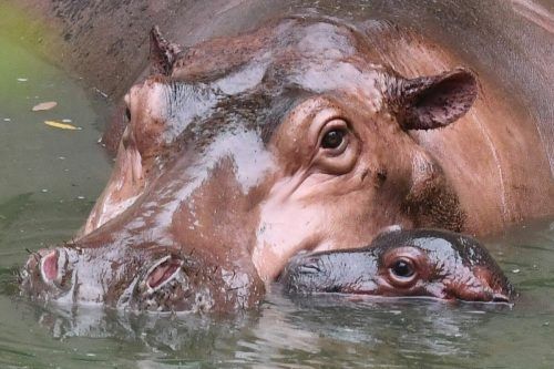 Nilpferd-Mama Renu tobt mir ihrem neugeborenen Kalb gerne im Wasser. Das Jungtier, das seiner Mama nicht von der Seite weicht, ist im indischen Assam State Zoo zur Welt gekommen und erfreut die Tierpfleger und Besucher gleichermaßen. afp