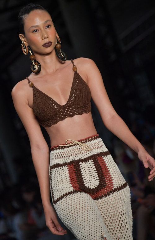 Gehäkelte Strandmode in Erdtönen dominiert die aktuelle Strandmode des Ateliers Mao de Mae. AFP