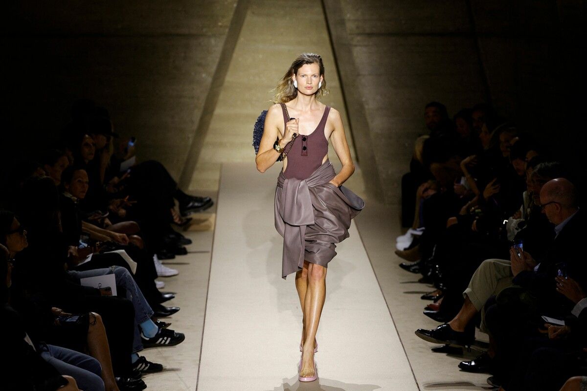 Das französische Label Chloe kombinierte zum schlichten Cut-out-Oberteil einen voluminösen Lederrock. AFp